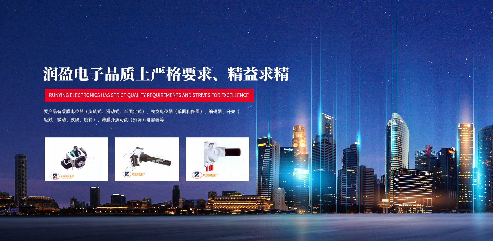 常州潤(rùn)盈電子有限公司成立以來(lái),從事編碼器、電位器、電子開(kāi)關(guān)的研發(fā)和制造。公司總部設(shè)立在江蘇省常州市禮嘉鎮(zhèn)。常州潤(rùn)盈電子有限公司擁有完整、科學(xué)的質(zhì)量管理體系,采用先進(jìn)的加工設(shè)備、精密的檢測(cè)儀器、高能的組裝生產(chǎn)線,在品質(zhì)上嚴(yán)格要求、精益求精,在團(tuán)隊(duì)管理上以人為本、精細(xì)管理,以此來(lái)確保本公司為客戶提供的優(yōu)良產(chǎn)品和服務(wù)。隨著公司業(yè)務(wù)的國(guó)際化,公司產(chǎn)品全部達(dá)到“ROHS”指令要求。公司現(xiàn)在主要產(chǎn)品有碳膜電位器(旋轉(zhuǎn)式、滑動(dòng)式、半固定式)、線繞電位器(單圈和多圈)、編碼器、開(kāi)關(guān)(輕觸、微動(dòng)、波段、旋轉(zhuǎn))、薄膜介質(zhì)可變(預(yù)調(diào))電容器等。我們始終堅(jiān)持“效率成就品牌,誠(chéng)心鑄就未來(lái)”的宗旨。不斷創(chuàng)新是企業(yè)得以生存的動(dòng)力,潤(rùn)盈電子期待與您的合作!